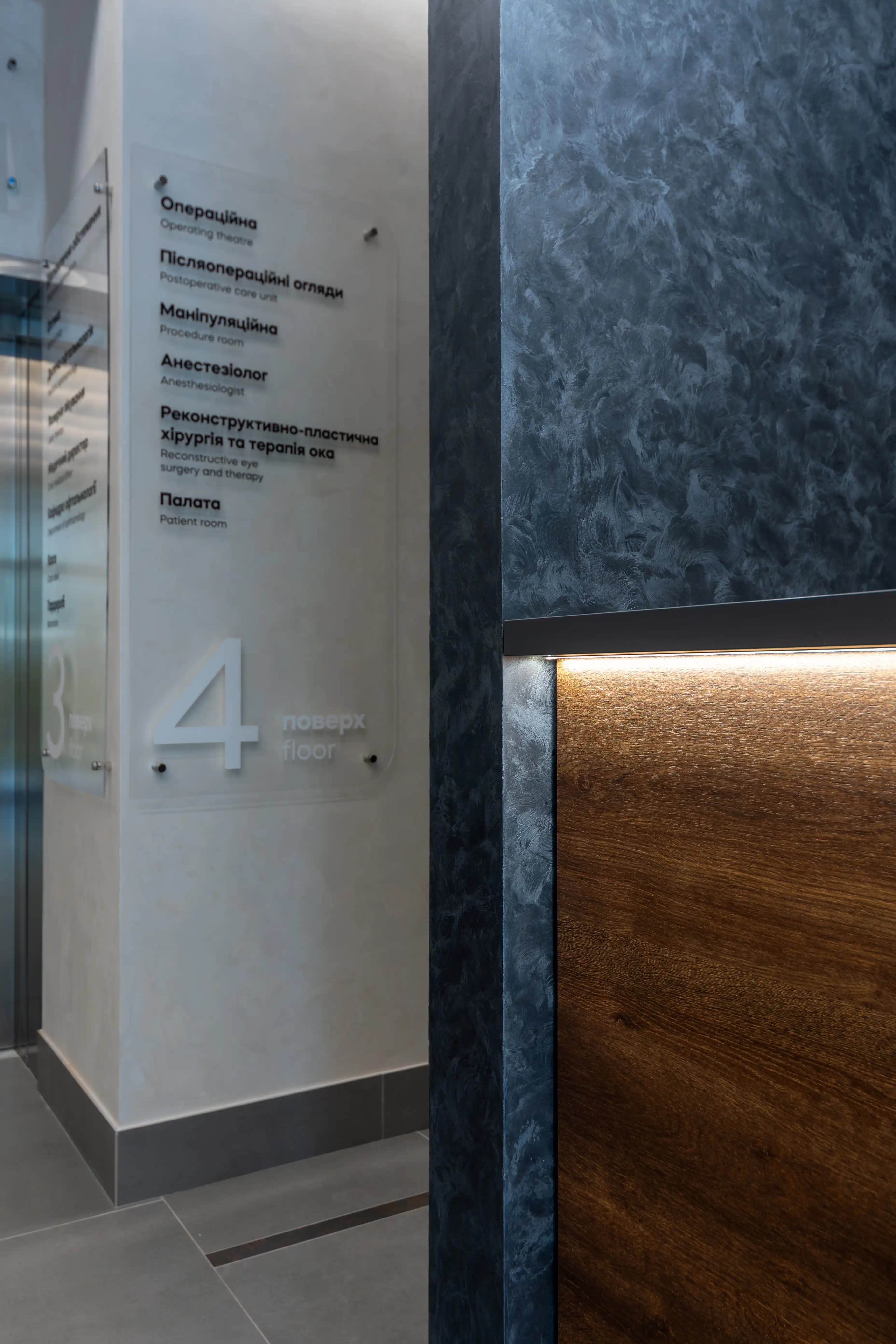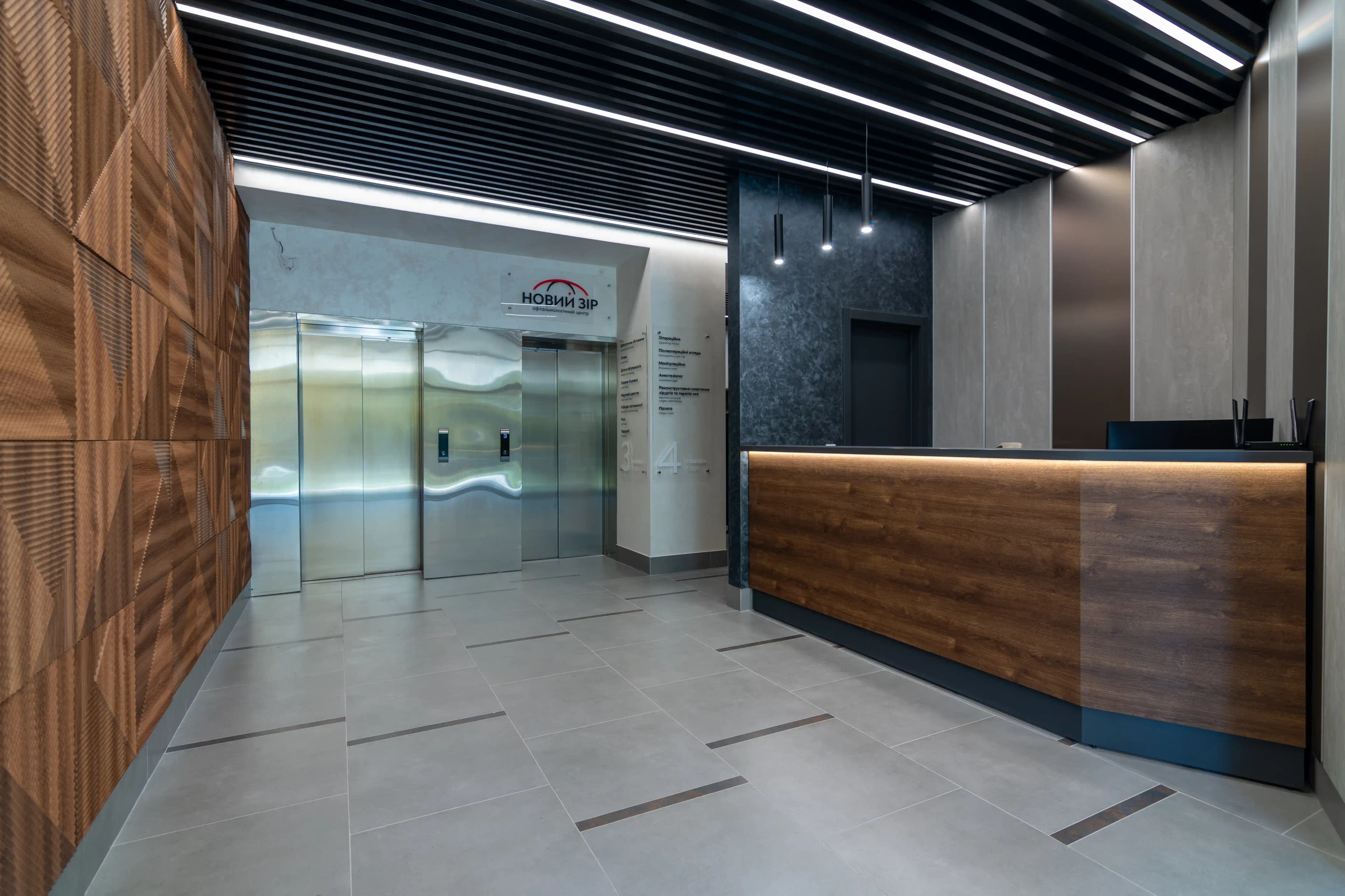 The interior of this area is designed to create a feeling of comfort and trust in the space from the very first seconds. The façade is made of Kronospan oak expressive bronze chipboard, whose natural texture is aptly emphasised by recessed LED lighting. The light delicately envelops the lines of the furniture, adding depth and a modern character to the interior. The upper part and accent elements of the area are made of Kronospan chipboard in anthracite. The contrast between the dark surfaces and the warm wood texture creates a restrained look that fits harmoniously into the overall concept of the space. This project demonstrates how well-thought-out furniture solutions combine comfort and aesthetics, becoming an important component of the first impression.