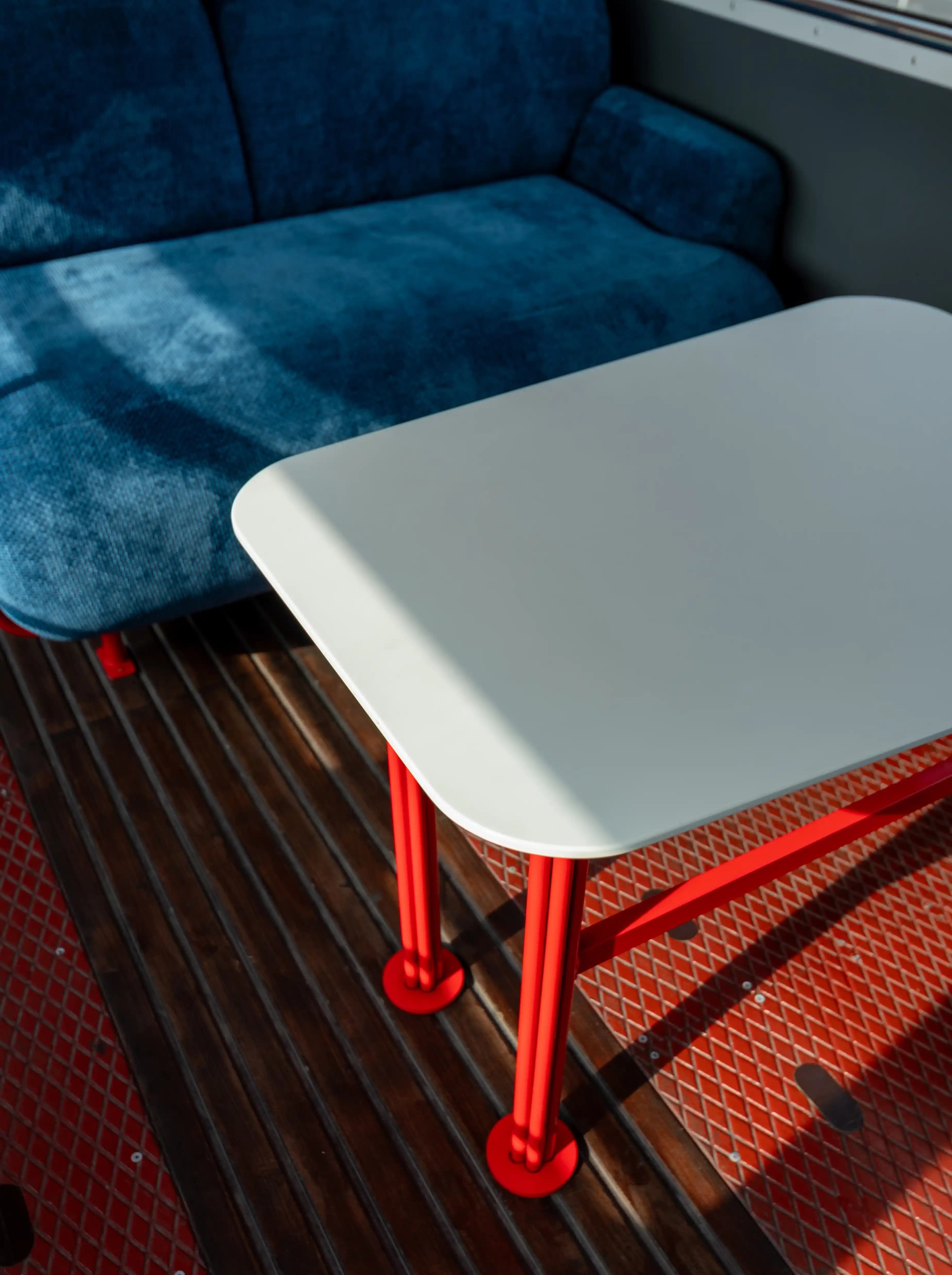 Individual design, well-thought-out functional solutions and bright accents - this is all about the implementation of the sales department project for the BIG BEN residential complex. It became the final stage of the creative concept of space and an important part of brand communication with customers. One of the key elements of the interior was a non-standard kitchen section integrated into the space of a two-storey British bus (double-decker). The lower section is designed as a fully functional kitchen unit: we installed a set of pull-out drawers, provided space for dishes, built-in appliances and waste sorters. The work surface is made of Grandex P-104 acrylic stone, and professional fittings and handles from Hafele were used to ensure the reliable operation of all moving parts. The space is complemented by tables in the brand's colours: blue and red with acrylic and quartz countertops. This combination adds dynamism to the interior and supports the overall concept. The project was implemented in collaboration with the Artprostir Design studio, which made it possible to achieve the integrity of the idea. This project demonstrates our approach to custom-made business furniture, as each element works for the brand, comfort and customer experience.